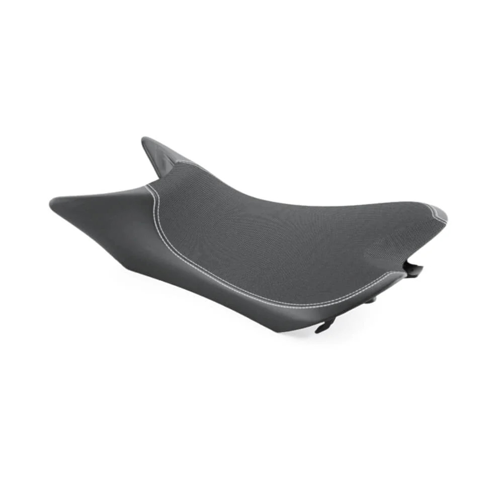 Para los conductores que deseen reducir la altura del asiento en Street Triple R, RS o Moto2, se ofrece un asiento bajo accesorio que proporciona una reducción de la altura de hasta 28 mm.
